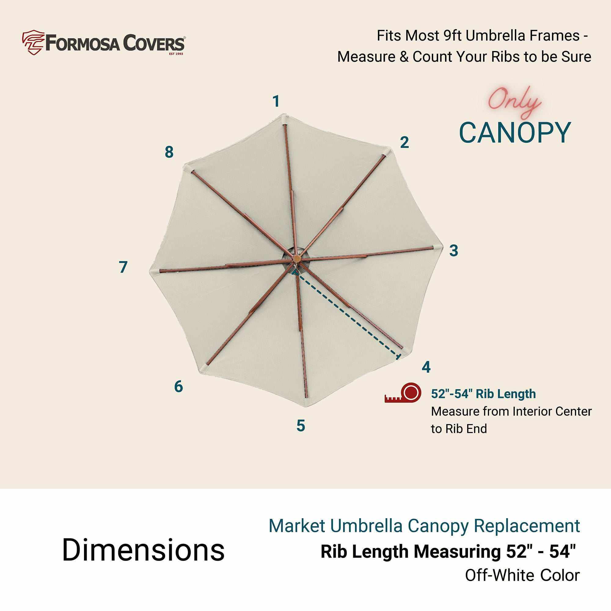• Fits 9ft 8 rib umbrella frame with rib length 52"-54"
