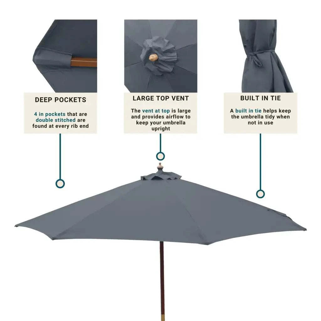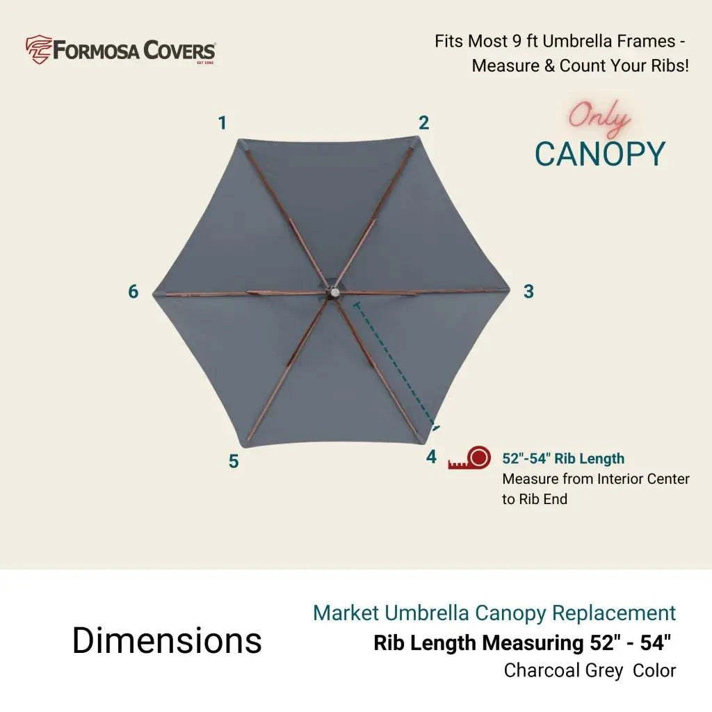 9ft Market Patio Umbrella 6 Rib Replacement Canopy Charcoal Grey