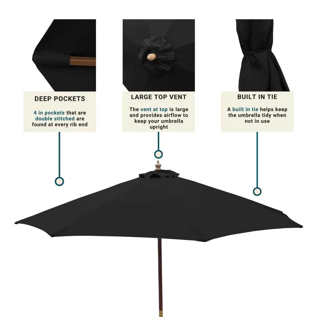 9ft Market Patio Umbrella 8 Rib Replacement Canopy Black Olefin