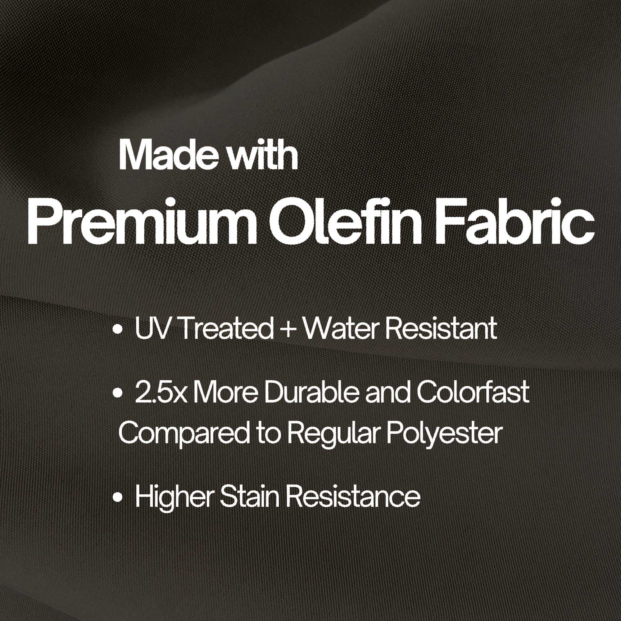 • Upgrade to olefin fabric for unmatched durability and performance! It’s lightweight, fade-resistant, and holds up beautifully against stains, sunlight, and wear. These long-lasting qualities and easy maintenance make it an investment for those who value both sustainability and superior performance.  Made sustainable through longevity, this fabric is a great choice for those who are looking for a solution that lasts and a color that stays vibrant!
