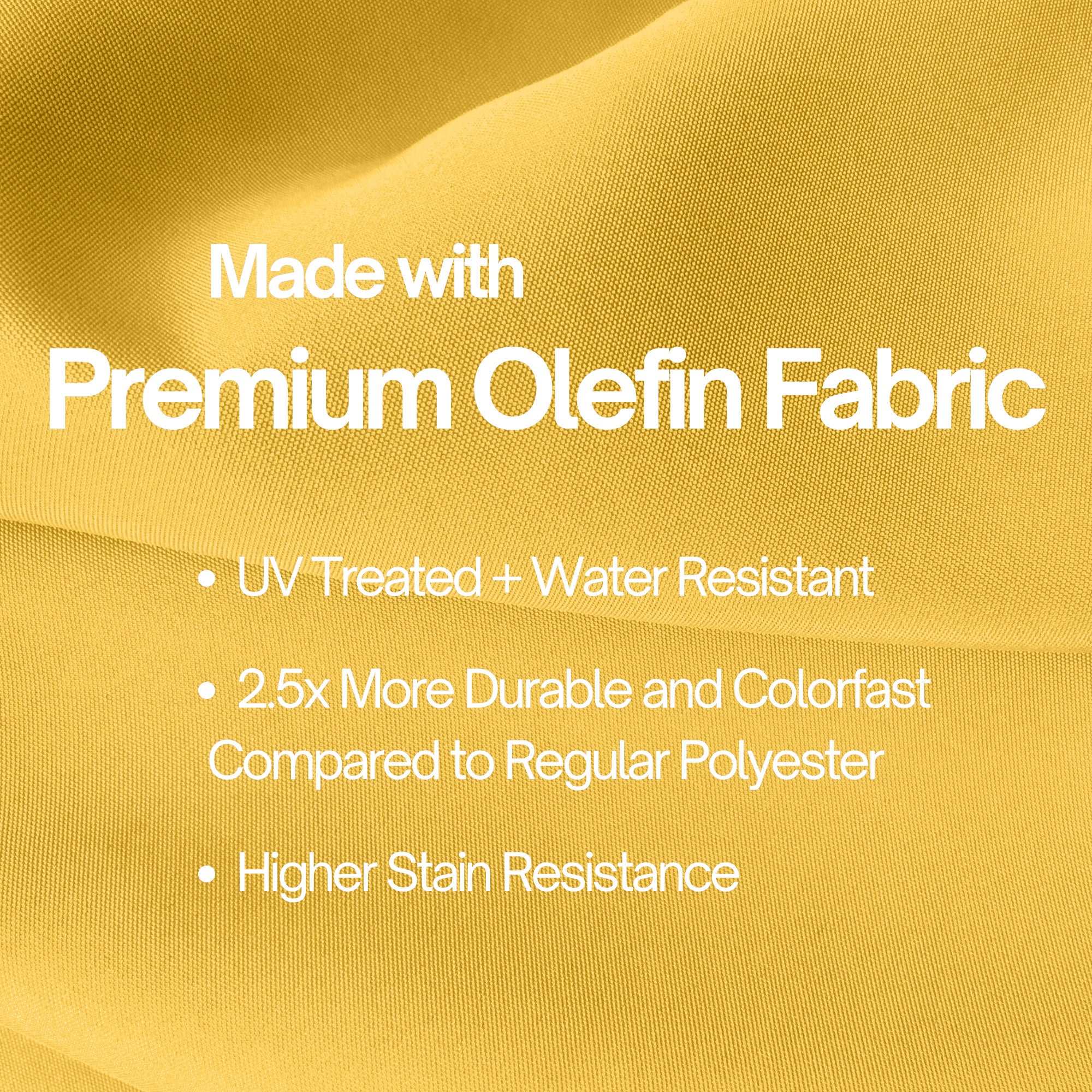 • Upgrade to olefin fabric for unmatched durability and performance! It’s lightweight, fade-resistant, and holds up beautifully against stains, sunlight, and wear. These long-lasting qualities and easy maintenance make it an investment for those who value both sustainability and superior performance.  Made sustainable through longevity, this fabric is a great choice for those who are looking for a solution that lasts and a color that stays vibrant!