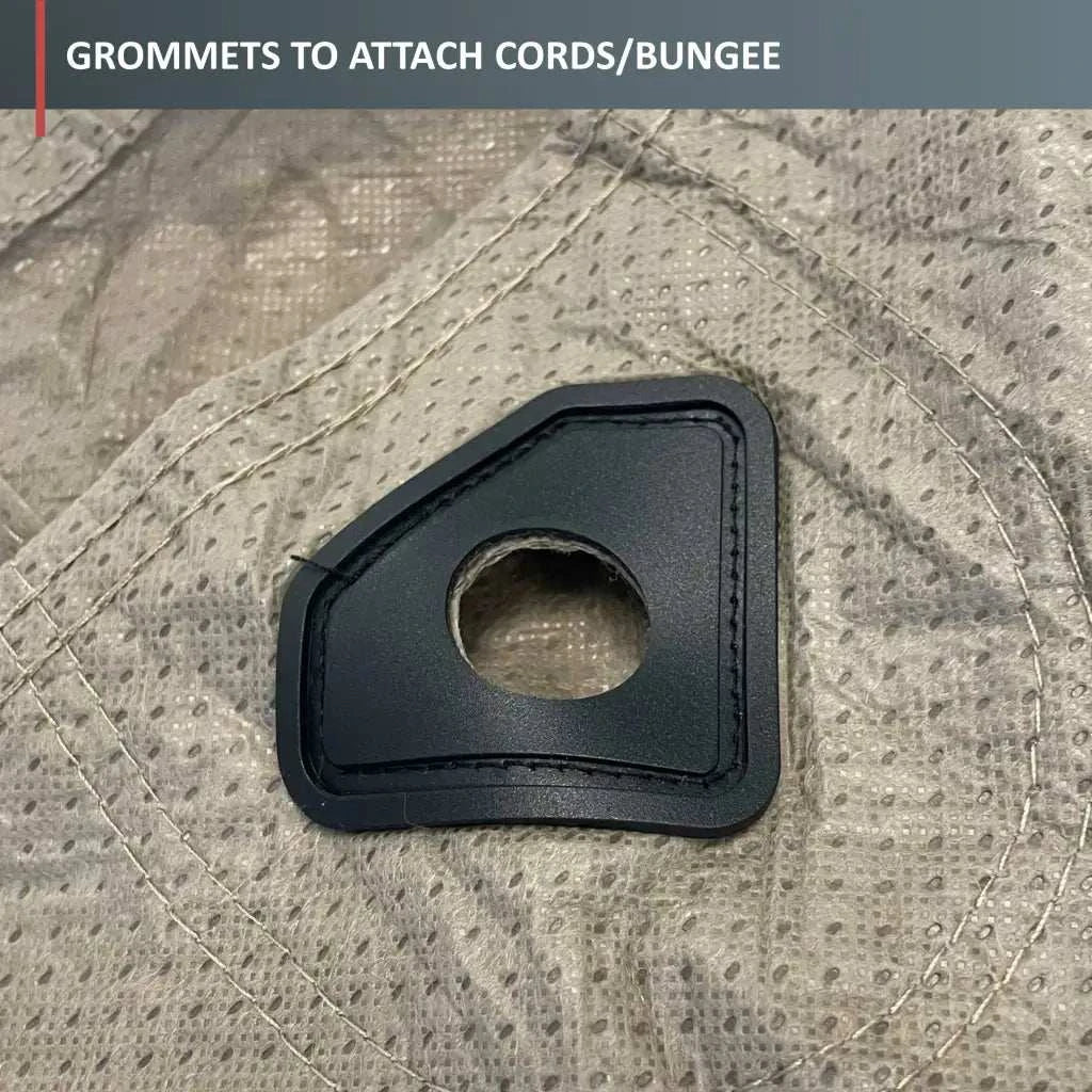 • Elastic hem and reinforced poly grommets for security and a nice fit. It also allows you room to put a cable lock