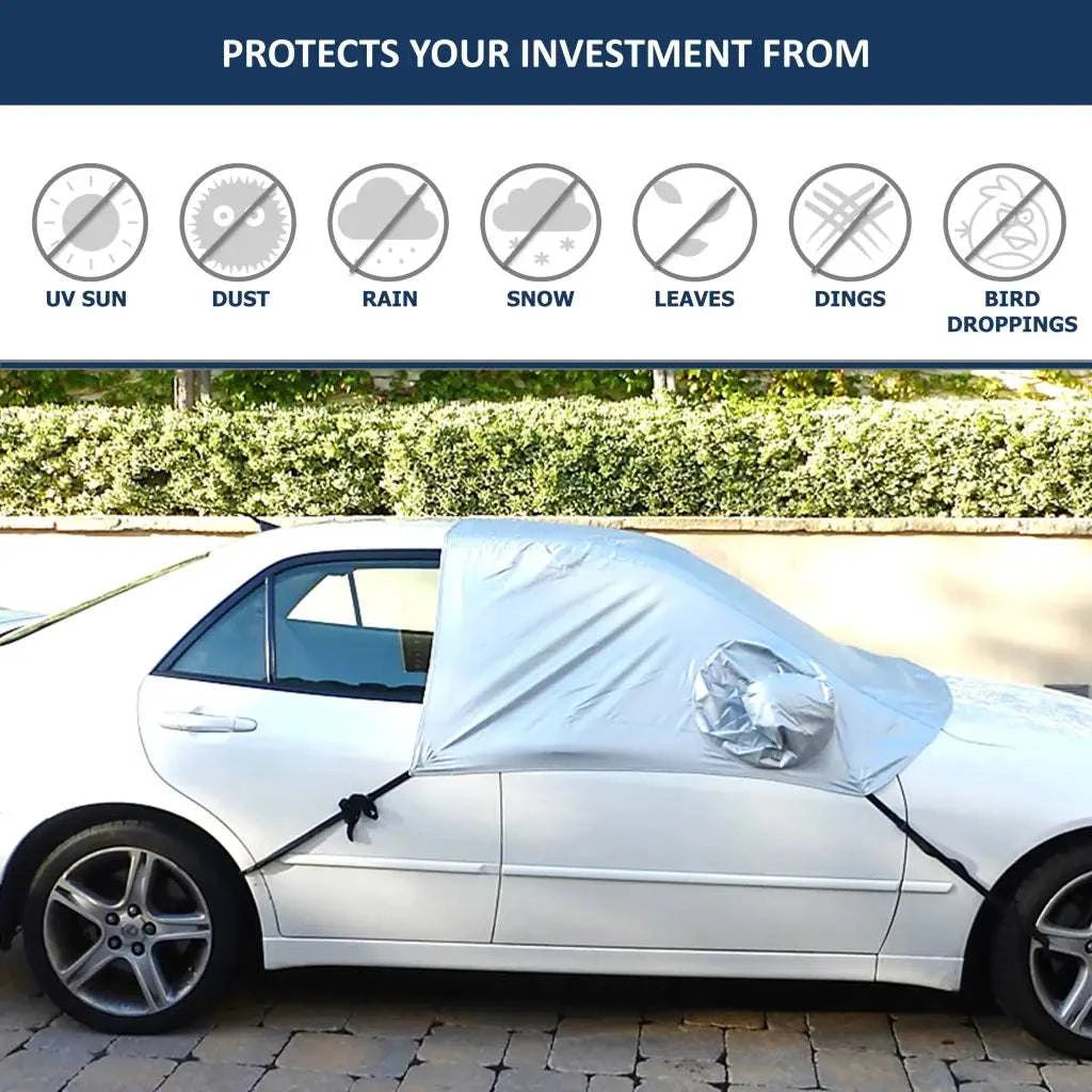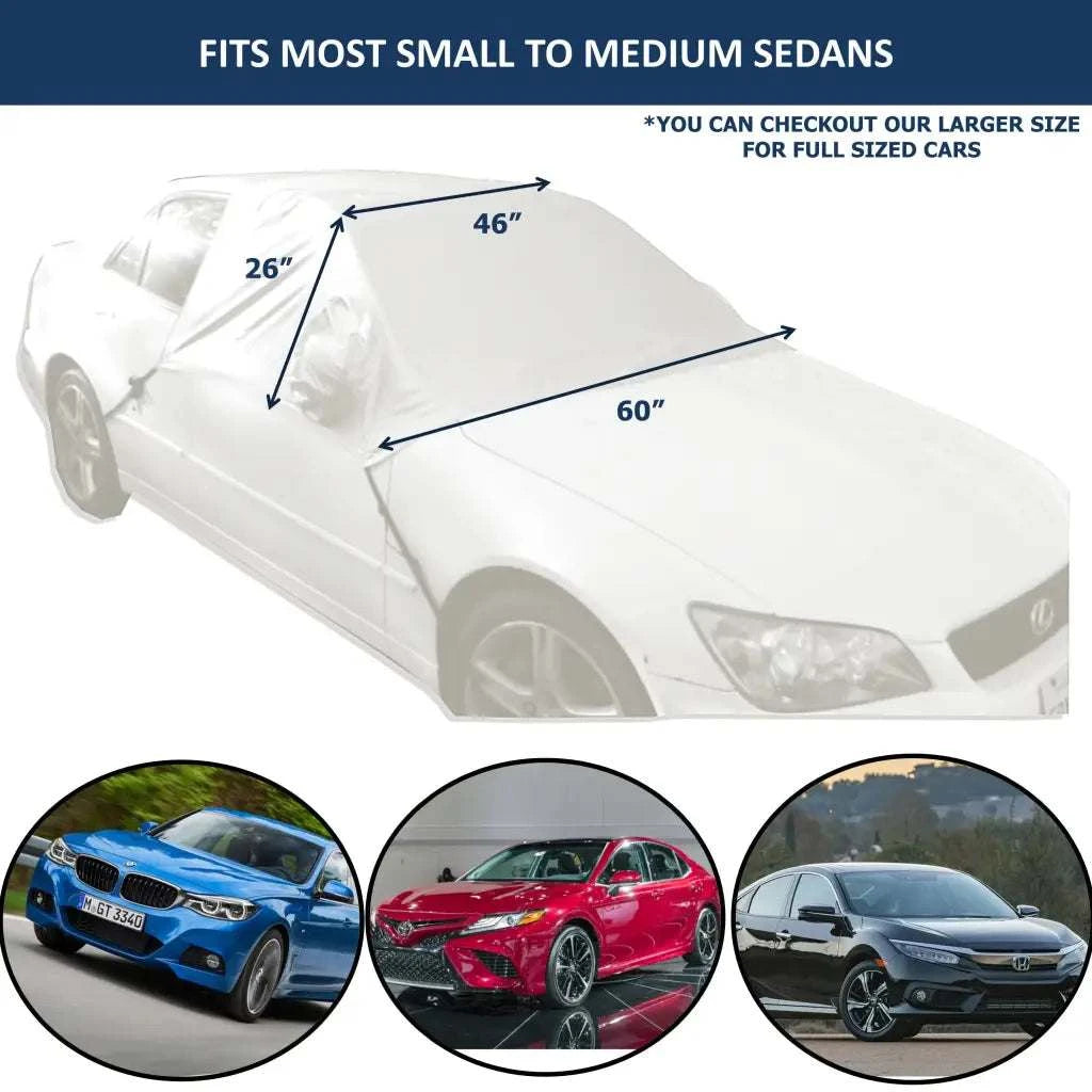 Car Snow and Windshield Sun Shade Half Top Cover fits Small to Mid Size Car