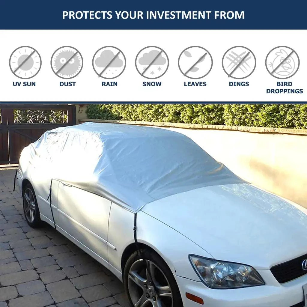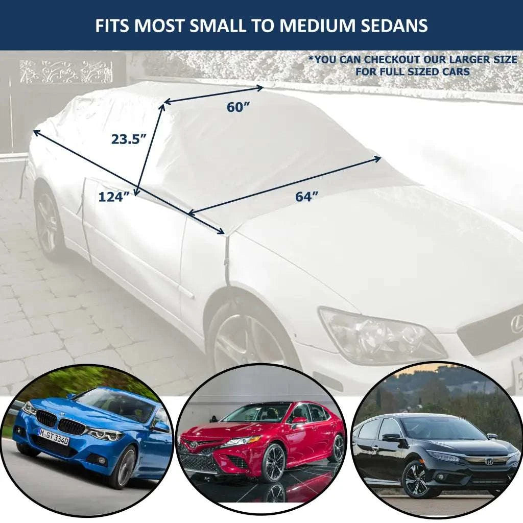 Car Snow and Windshield Sun Shade Full Top Cover fits Small to Mid Size Car