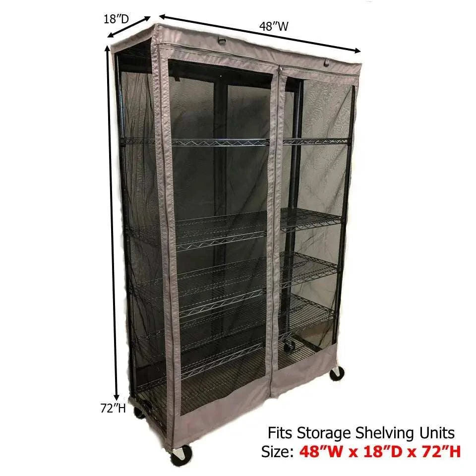 Storage Shelving Unit Cover, fits racks 48"W x 18"D x 72"H All Mesh Netting Sides