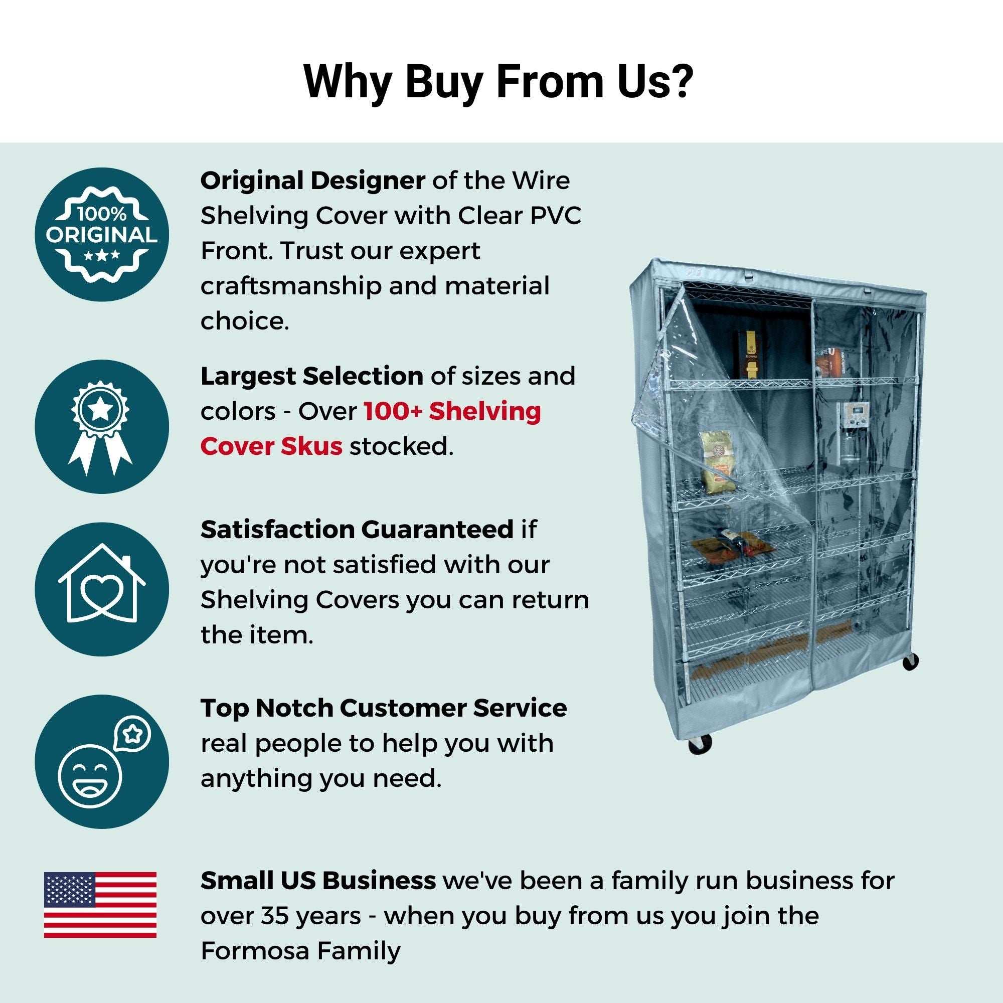 Storage Shelving Unit Cover, fits racks 48"W x 18"D x 72"H one side see through panel in Glacier Blue