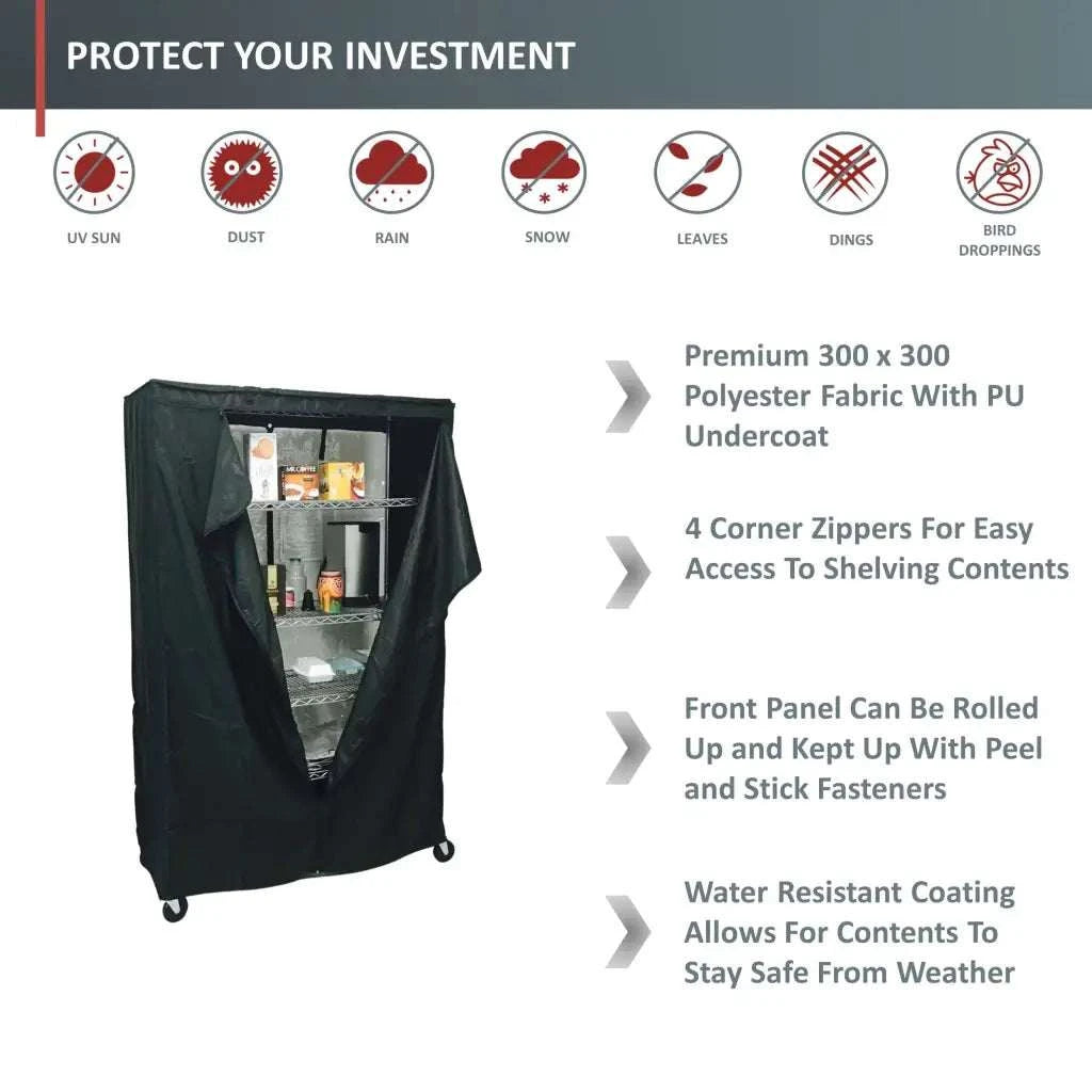 Storage Shelving Unit Cover, fits racks 48"W x 24"D x 72"H in Black