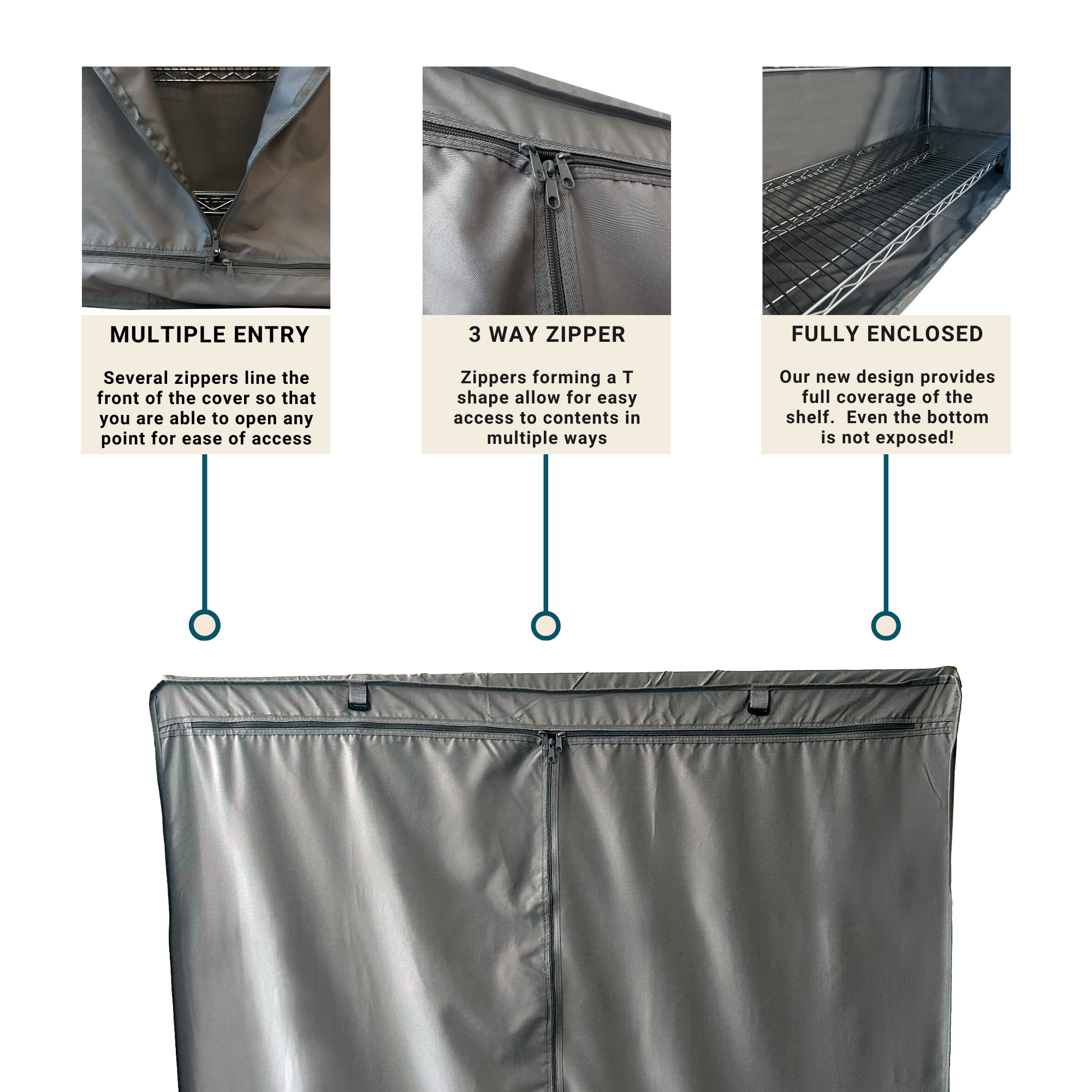 • Both panels feature 3 way zippers for easy in & out of the shelves