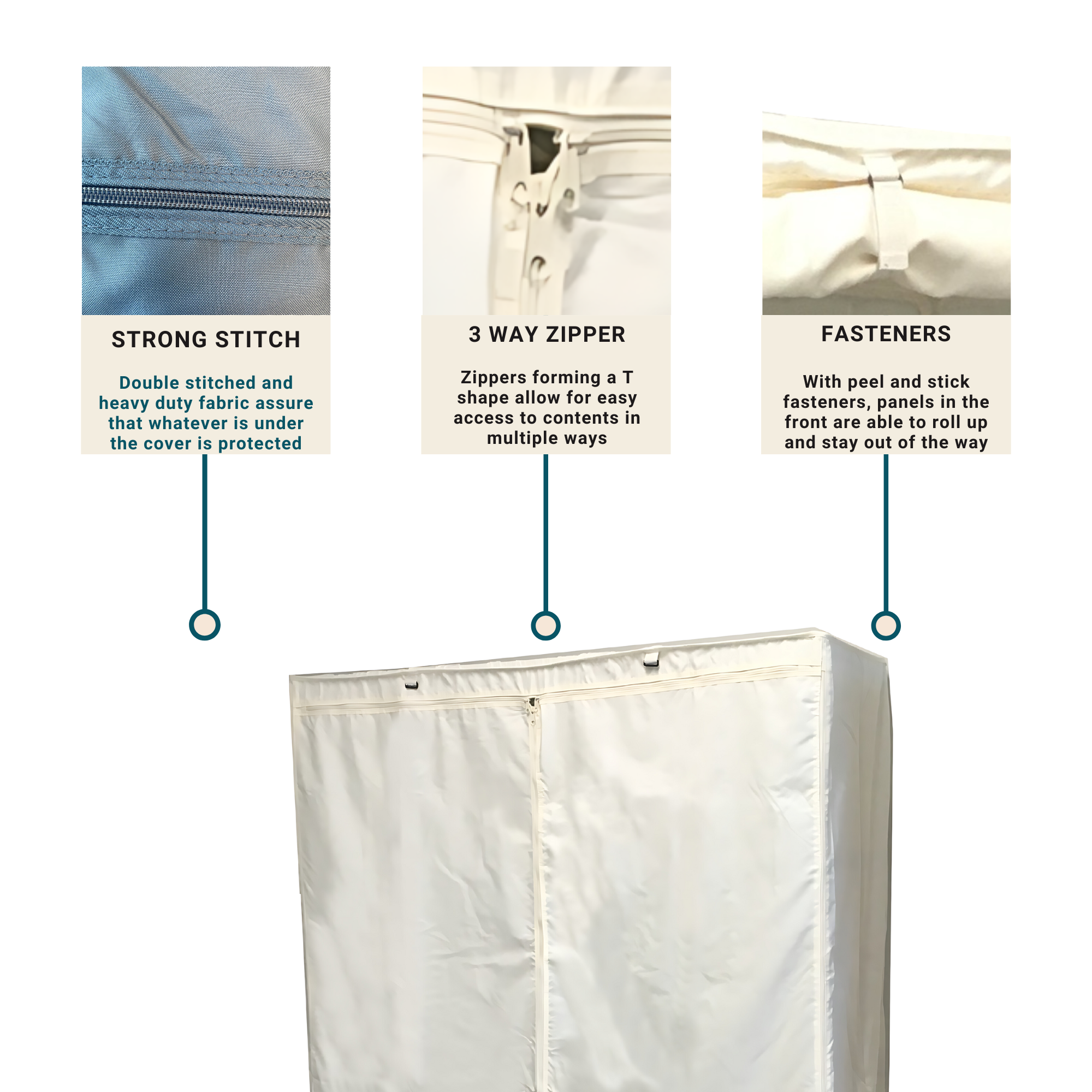 Storage Shelving Unit Cover, fits racks 48"W x 18"D x 72"H in Off White
