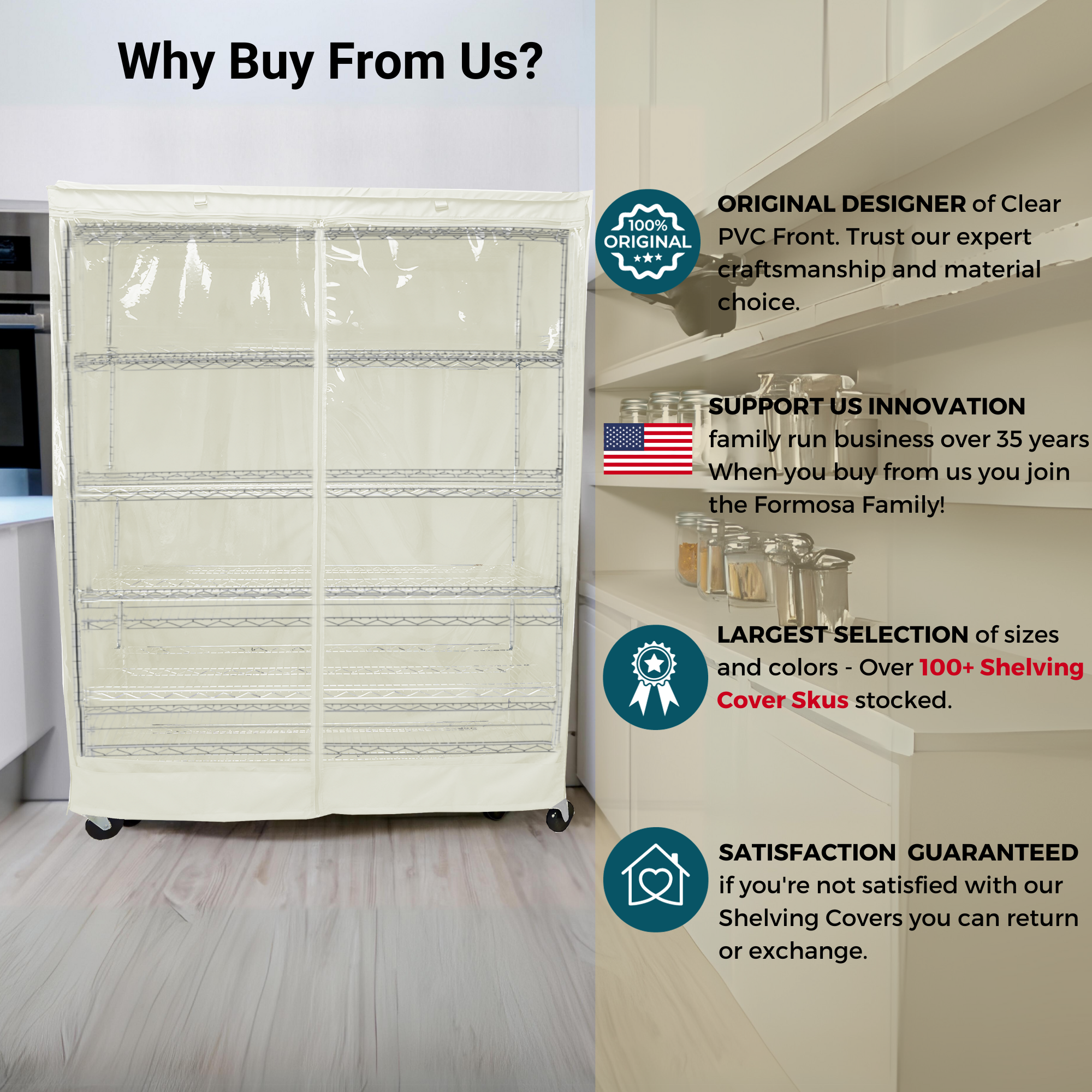 Storage Shelving Unit Cover, fits racks 48"W x 18"D x 72"H one side see through panel in Off White