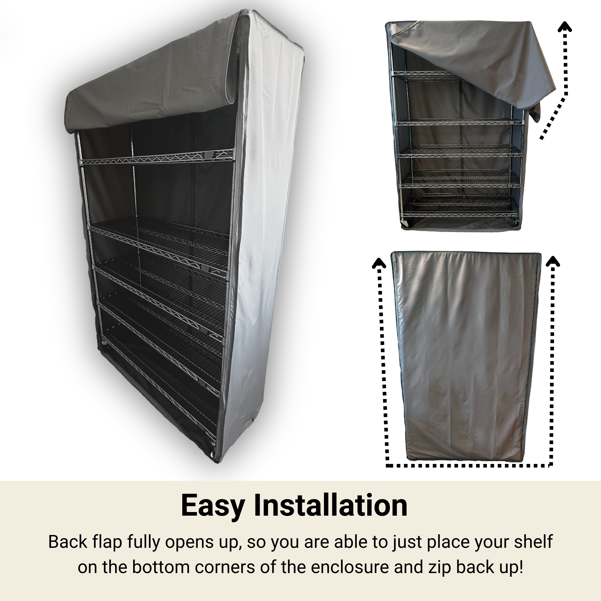 Wire Shelving Unit Enclosure, fits racks 48"W x 18"D x 72"H in Grey (No Wheels)