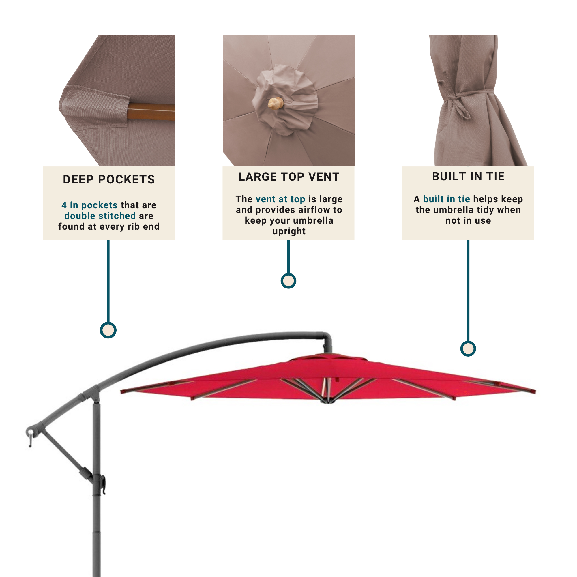 9ft Cantilever Hanging Umbrella 8 Rib Replacement Canopy Taupe