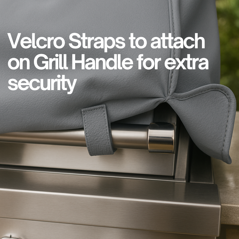 • ALL WEATHER PROTECTION: New waterproof vinyl exterior guards against extra tough weather conditions. From the fall leaves of September to the harsh Winter's rain, snow, and sleet, you can be sure your grill is safe. Sturdy peel and stick straps along with an interior elastic on the back protect against gusty winds. The sun is no match for our cover that protects against UV damage.