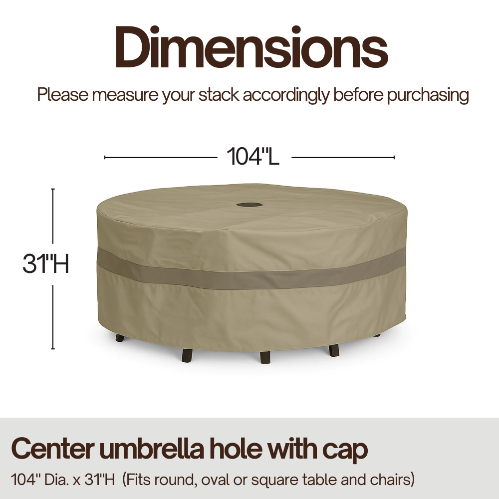 Patio Conversation Set Cover For Round Table 104"Dia. X 31"H with Umbrella Hole Classic Taupe