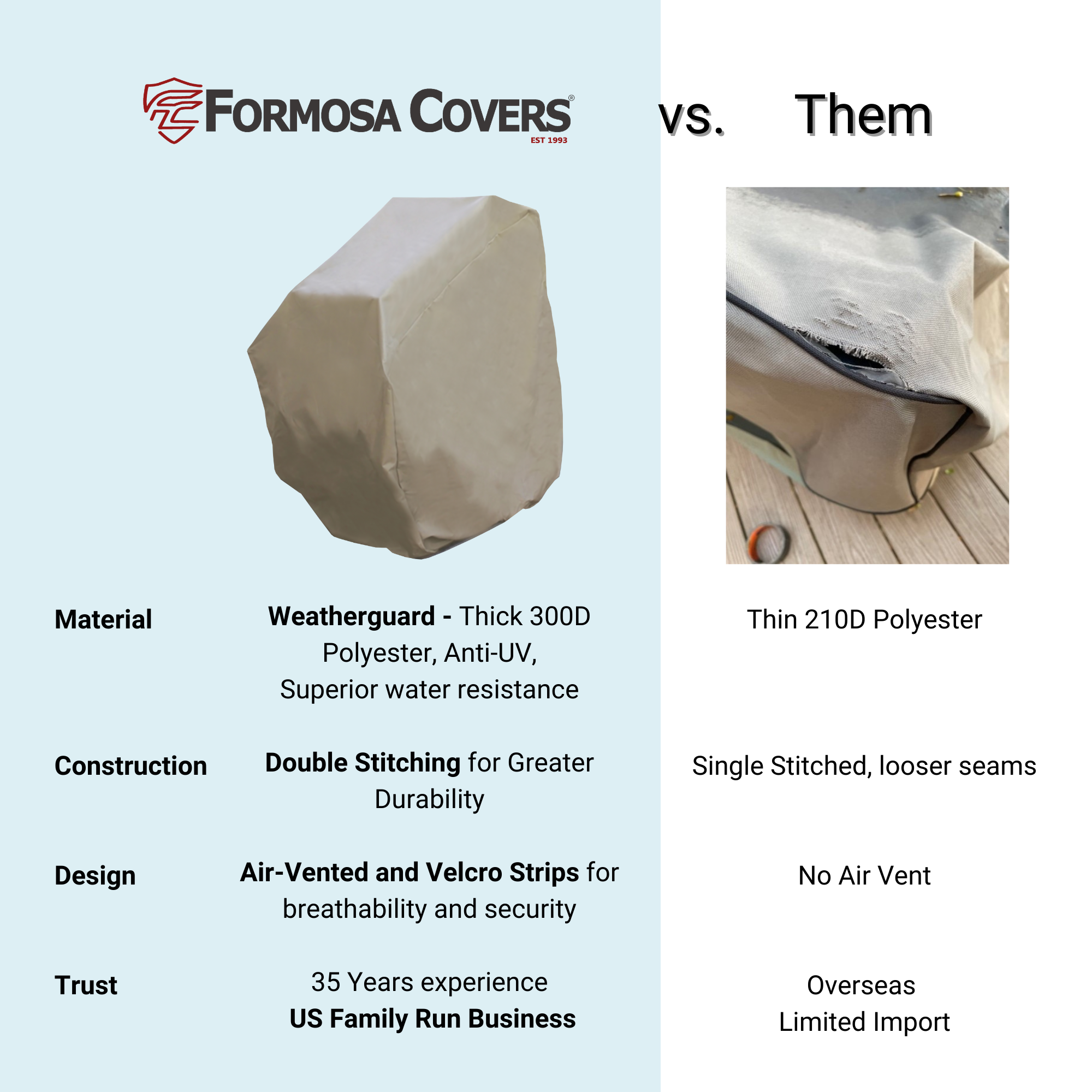 Image of a comparison between Formosa Covers' Patio Stacked Chairs Cover Up to 8 Chairs (32