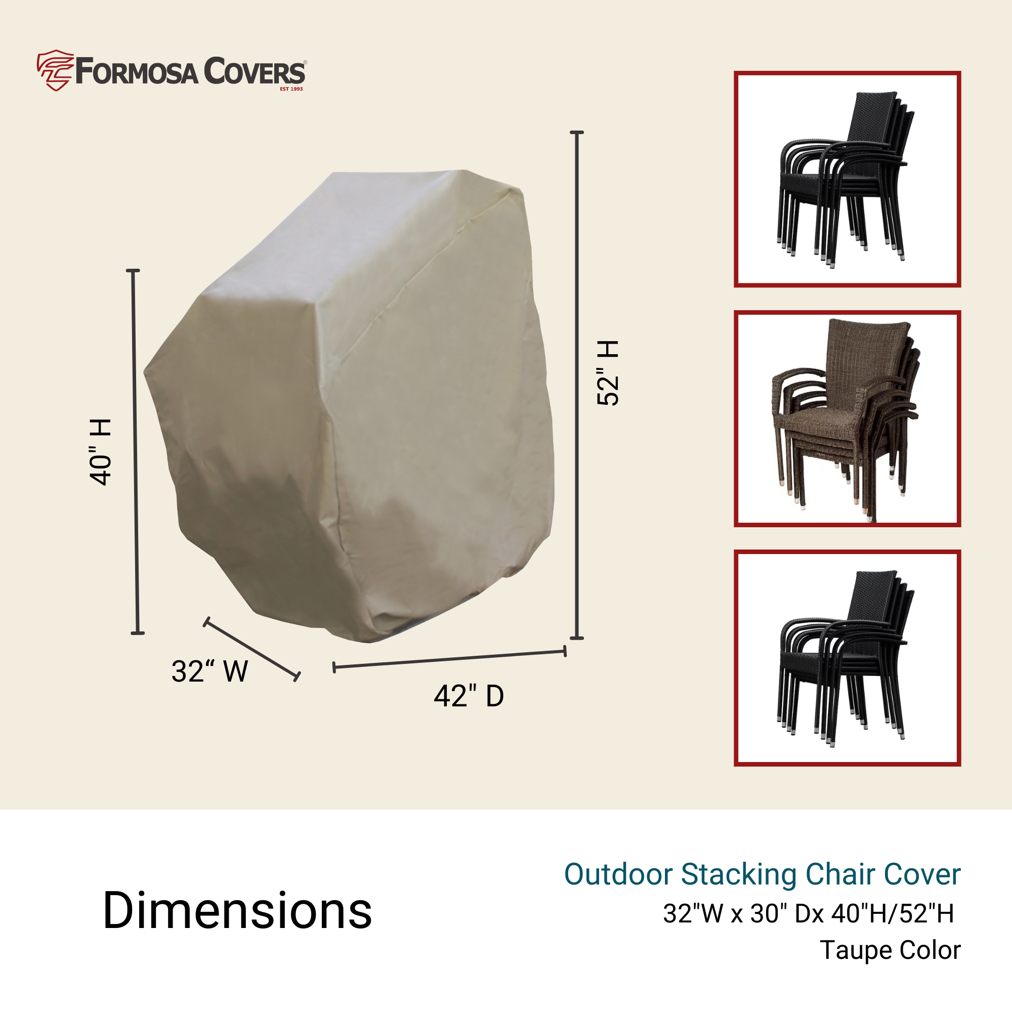 An illustration of a Formosa Covers Patio Stacked Chairs Cover in classic taupe color. The weatherproof cover measures 32
