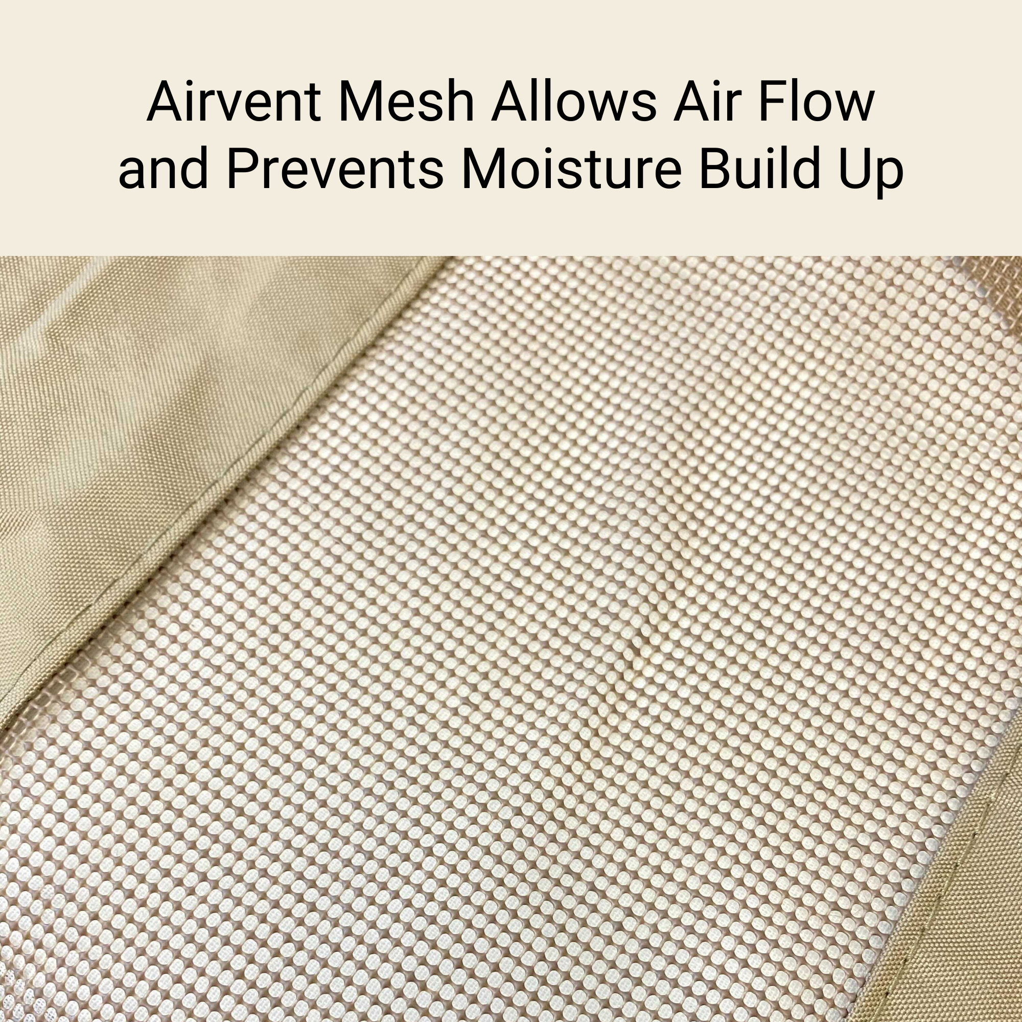 Close-up image of the beige Airvent mesh fabric from Formosa Covers' Patio Stacked Chairs Cover (up to 8 chairs, 32