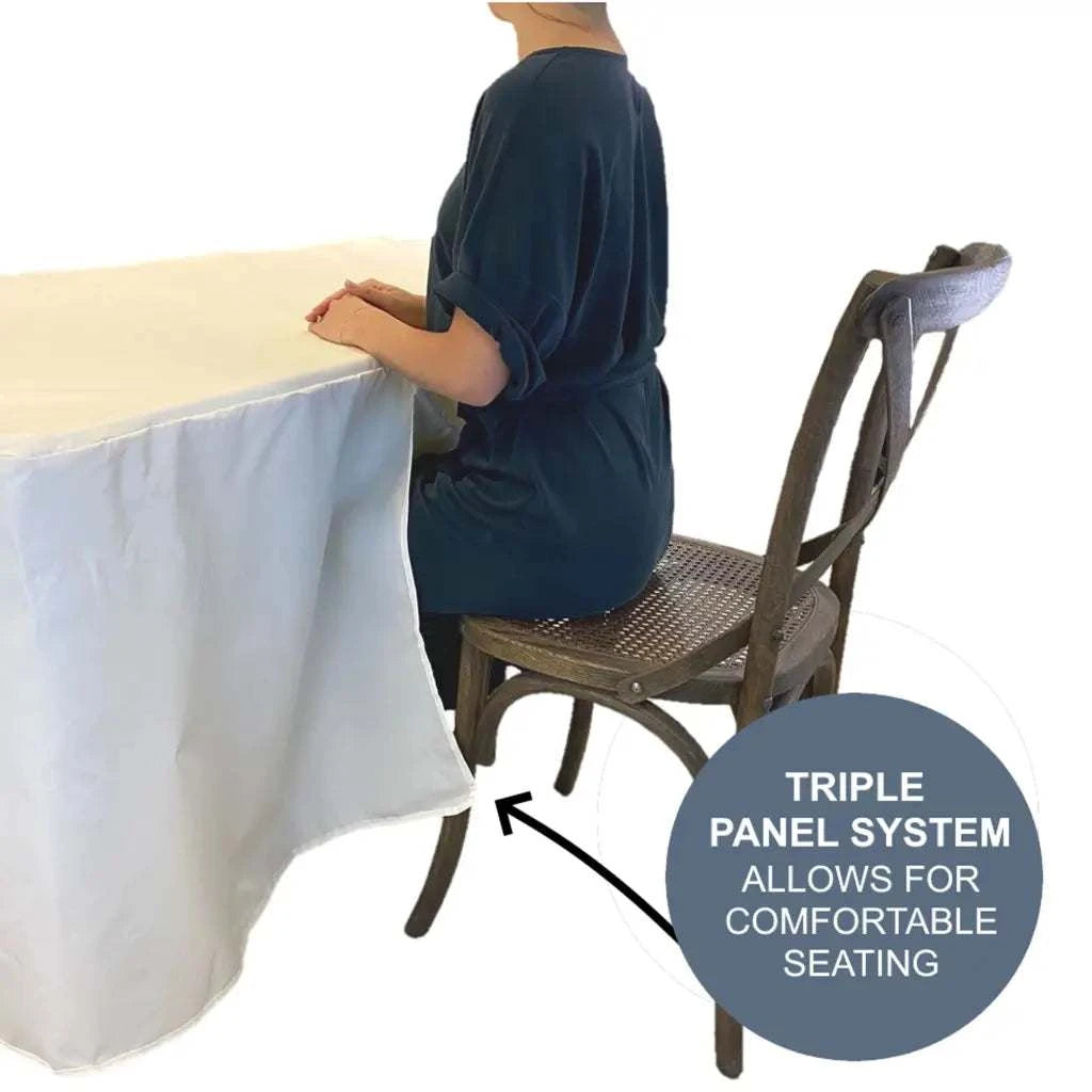 • TRIPLE PANEL SYSTEM: Allows for comfortable seating ¢€“ no accidentally pulling down with your legs, and easy access underneath for quickly getting stored items like extra merchandise at a trade show, or even playing hide and seek!